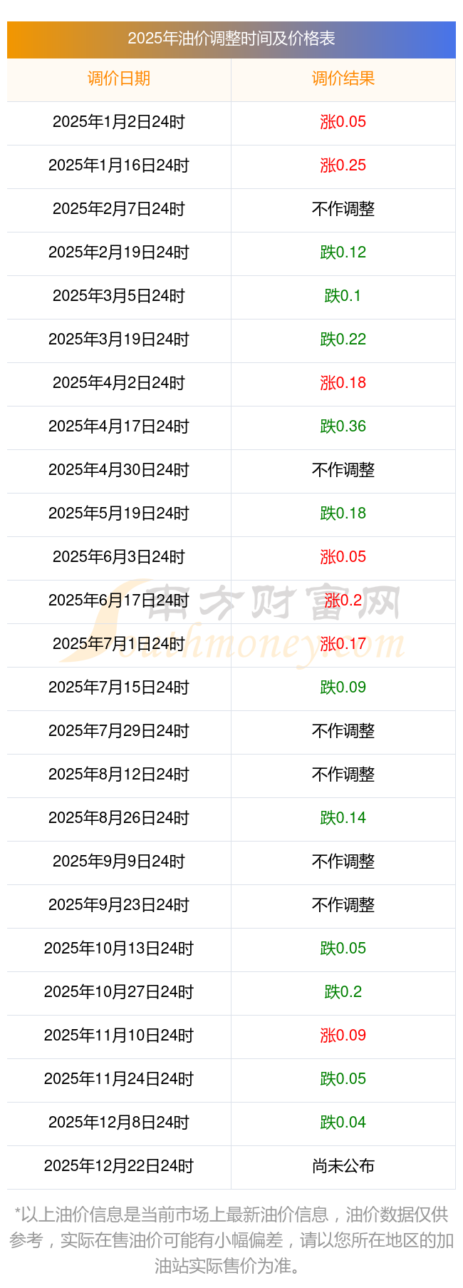 2025年12月14日全國(guó)各地汽油價(jià)格調(diào)整時(shí)間及價(jià)格一覽表