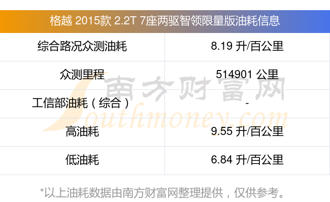 以上油耗數(shù)據(jù)由南方財(cái)富網(wǎng)整理提供,僅供參考。