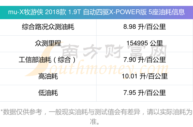 根據(jù)車主實測數(shù)據(jù),該車型低油耗為7.95升每百公里,高油耗為10.01升每百公里,綜合路況眾測油耗為8.98升每百公里,工信部綜合油耗為7.90升每百公里。
