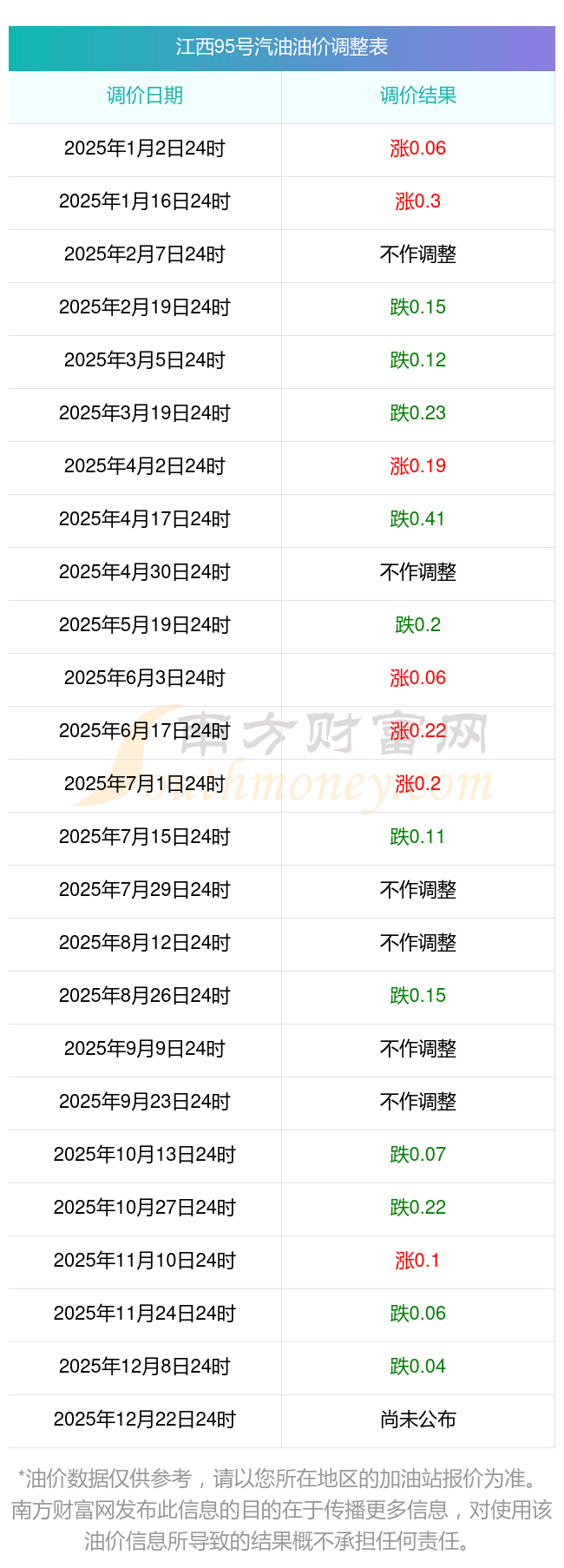 江西南昌2025年油價調整時間及最新價格表