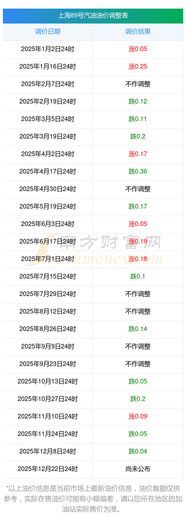 2025年油價調(diào)整時間及價格一覽表