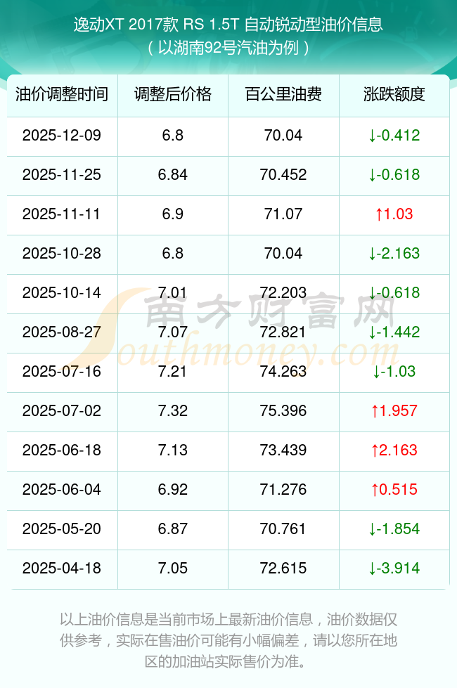 以上油耗數(shù)據(jù)由南方財富網(wǎng)整理提供,僅供參考。