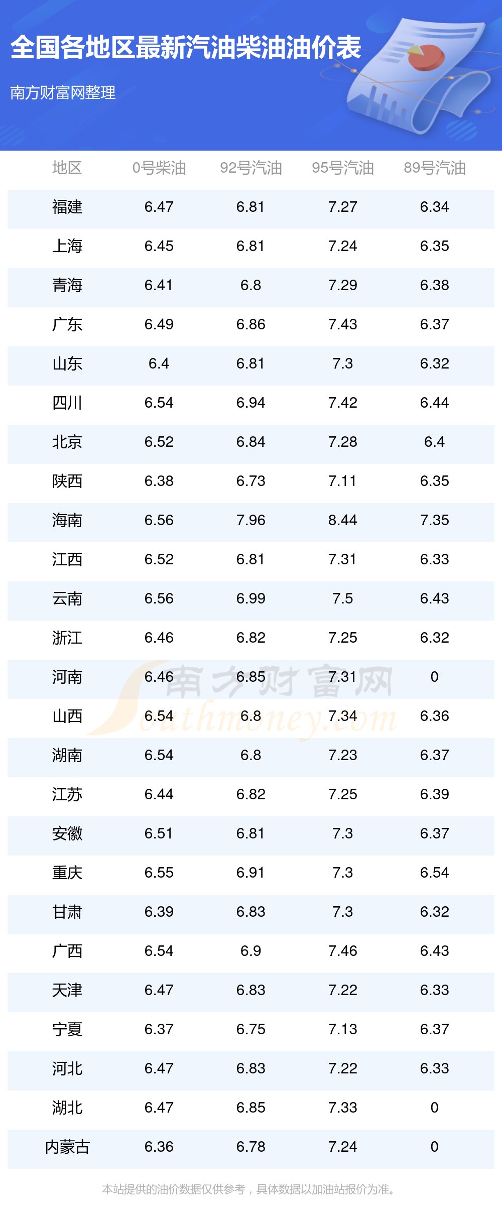 全國0號柴油平均價格為:6元每升,其中,最低為內(nèi)蒙古,價格6.36元/升,最高為海南,價格6.56元/升。