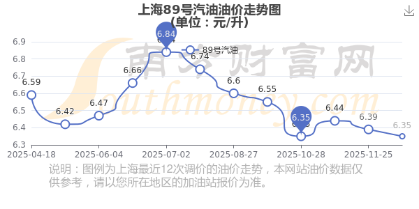 12月14日,上海89號(hào)汽油的價(jià)格是6.35元每升,本次的調(diào)整時(shí)間為12月9日,對(duì)比上次的調(diào)整減了0.04元,減0.626%,下次調(diào)整時(shí)間為12月22日24時(shí),還有8.31天。
