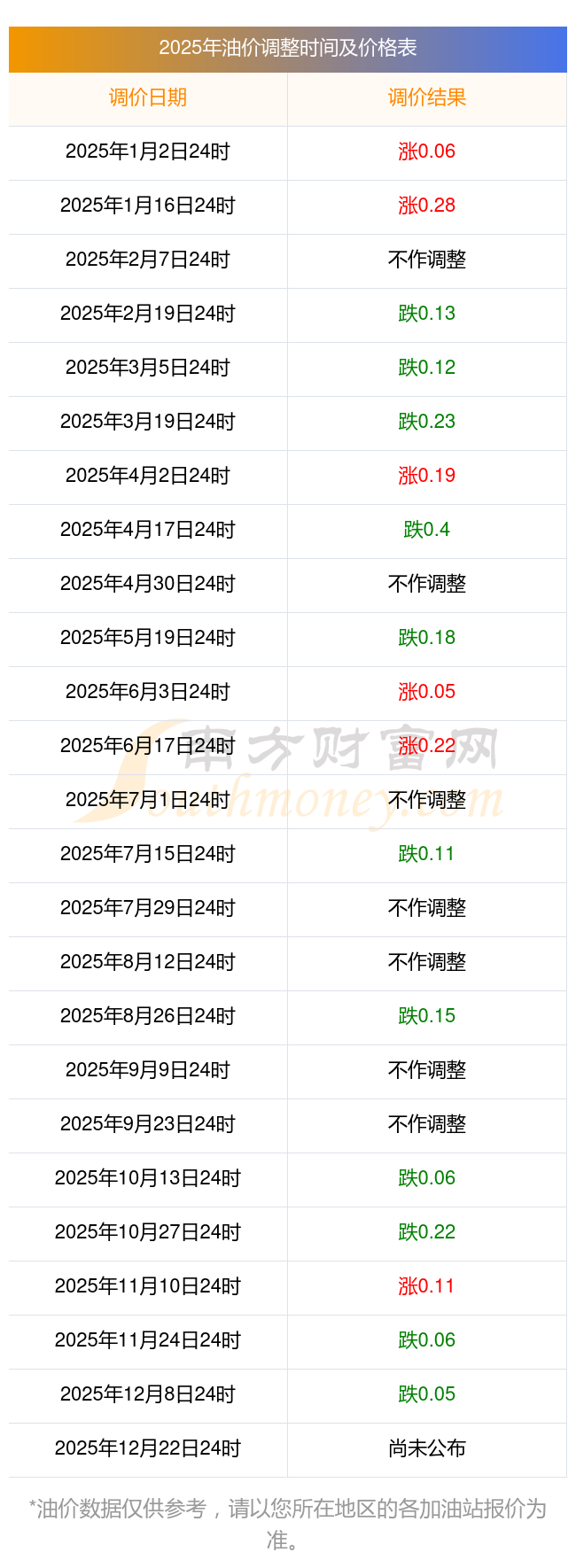 油價調(diào)整最新消息:瑞安汽油、柴油12月14日每升的價格是多少?具體為:92號汽油為6.82元,下調(diào)了0.04元;95號汽油為7.25元,下調(diào)了0.05元;89號汽油為6.32元,下調(diào)了0.04元;0號柴油為6.46元,下調(diào)了0.05元,本輪油價的調(diào)整時間為12月9日。瑞安下一輪油價調(diào)整時間12月22日24時,距離現(xiàn)在還有8.31天。