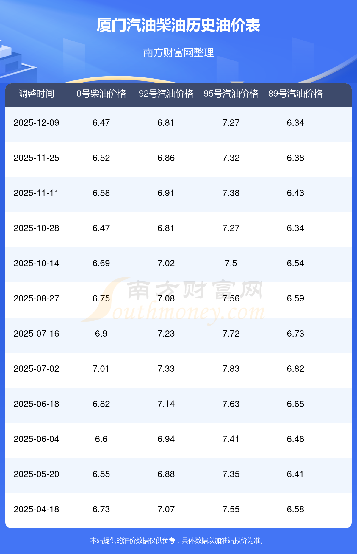 油價(jià)調(diào)整最新消息:廈門汽油、柴油12月14日每升的價(jià)格(油價(jià)調(diào)整時(shí)間12月9日):92號(hào)汽油6.81元;95號(hào)汽油7.27元;89號(hào)汽油6.34元;0號(hào)柴油6.47元。廈門下一輪油價(jià)調(diào)整時(shí)間12月22日24時(shí),距離現(xiàn)在還有8.29天。