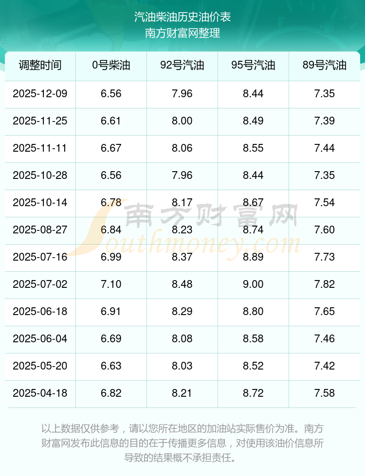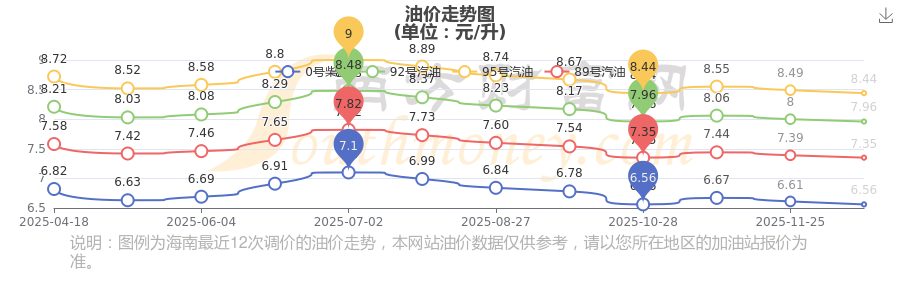 三亞95號(hào)汽油12月14日最新價(jià)格為12月9日油價(jià)調(diào)整后的價(jià)格,具體為8.44元/升,相對(duì)上次調(diào)整時(shí)間11月25日的油價(jià)8.49元每升,共減了0.05元,減0.589%。下一輪油價(jià)調(diào)整時(shí)間12月22日24時(shí),距離現(xiàn)在還有8.29天。