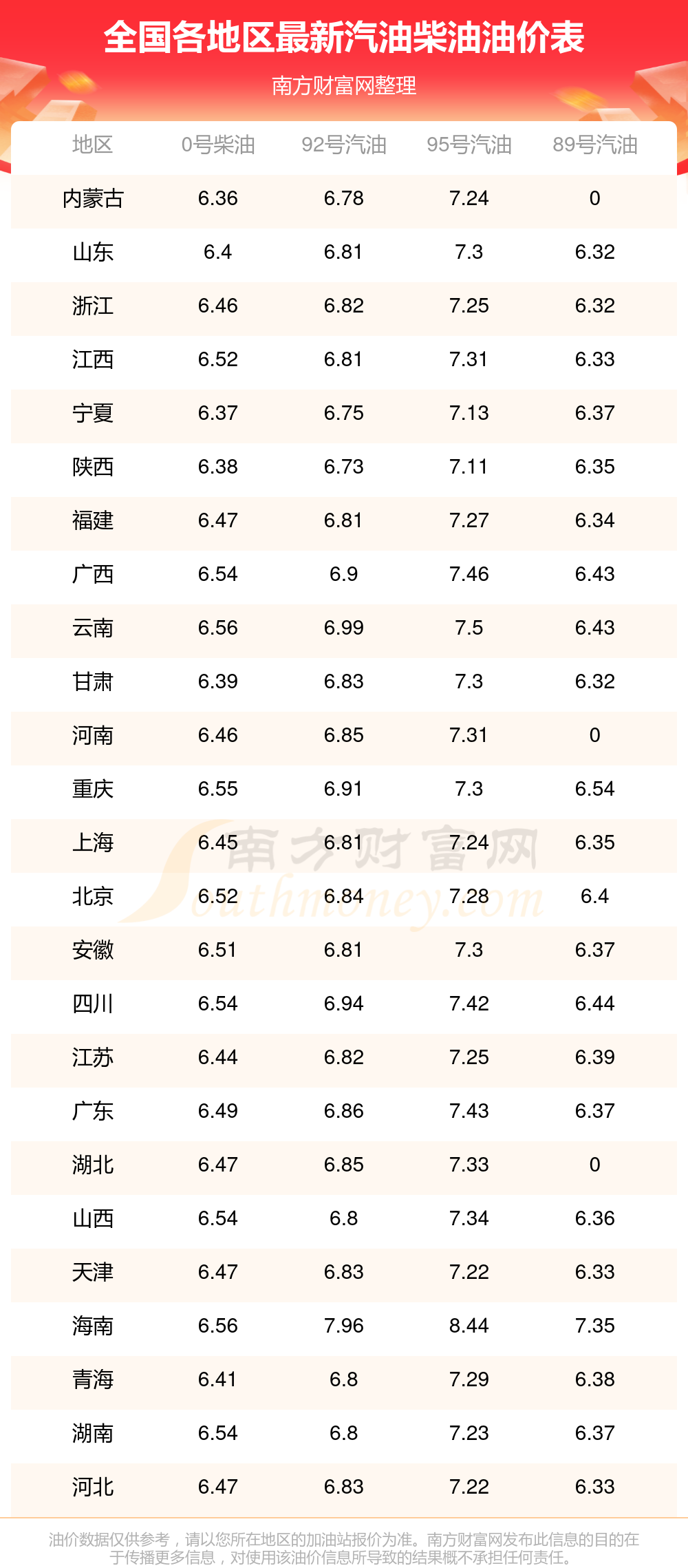 油價調(diào)整最新消息:本次油價的調(diào)整時間為12月9日,調(diào)整后全國92號汽油平均價格為7元每升,其中,最低的是陜西,6.73元每升,最高的是海南,7.96元每升。全國95號汽油平均價格為7元每升,其中,最低的是陜西,7.11元每升,最高的是海南,8.44元每升。全國0號柴油平均價格為:6元每升,其中,最低的是內(nèi)蒙古,6.36元每升,最高的是海南,6.56元每升。全國89號汽油平均價格為6元每升,其中,最低的是浙江,6.32元每升,最高的是海南,7.35元每升。下一輪汽油價格調(diào)整時間12月22日24時,距離現(xiàn)在還有8.28天。