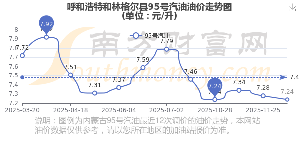 呼和浩特和林格爾縣95號汽油歷史油價(jià)走勢圖