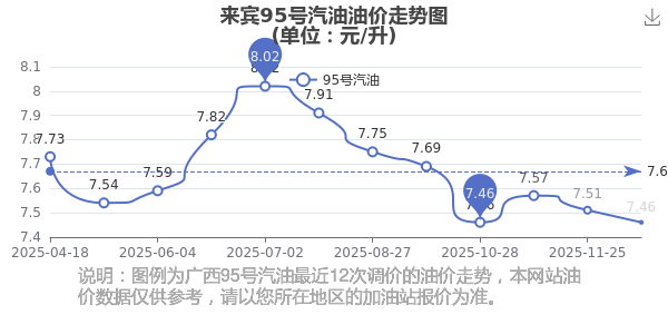 來賓2025年汽油價(jià)格調(diào)整走勢圖