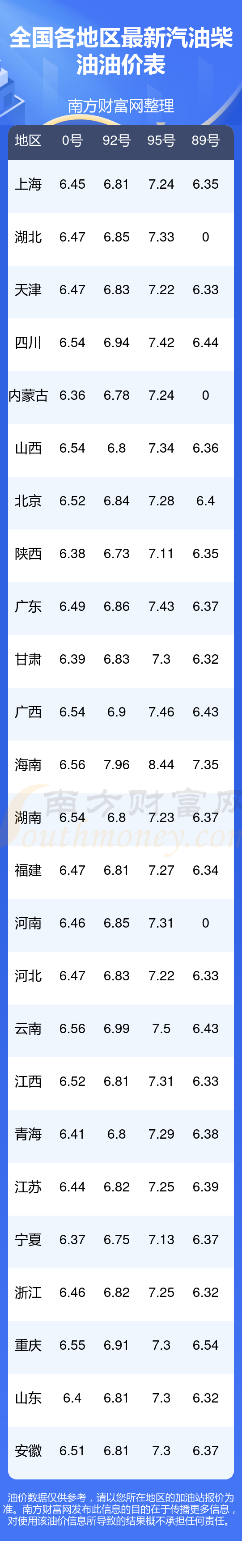 以上油價信息是當(dāng)前市場上最新油價信息,油價數(shù)據(jù)僅供參考,實際在售油價可能有小幅偏差,請以您所在地區(qū)的加油站實際售價為準(zhǔn)。