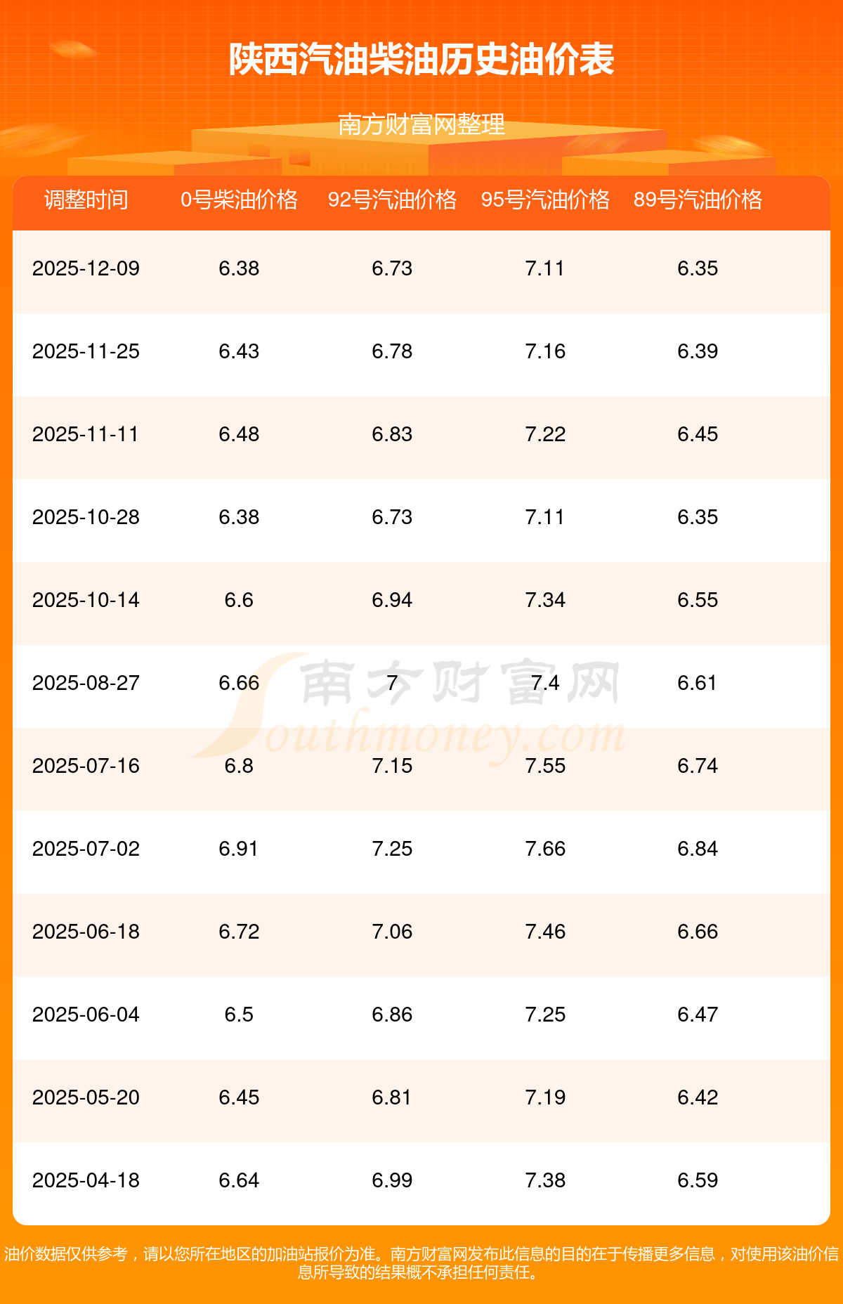 2025年最新汽油柴油歷史油價(jià)表