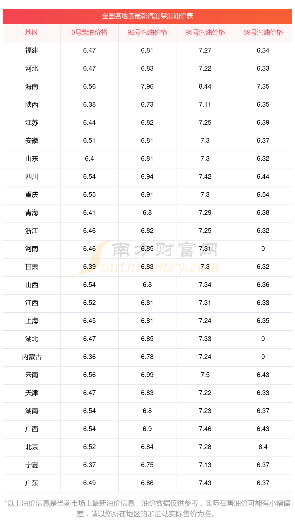 全國(guó)各地區(qū)2025年最新油價(jià)表