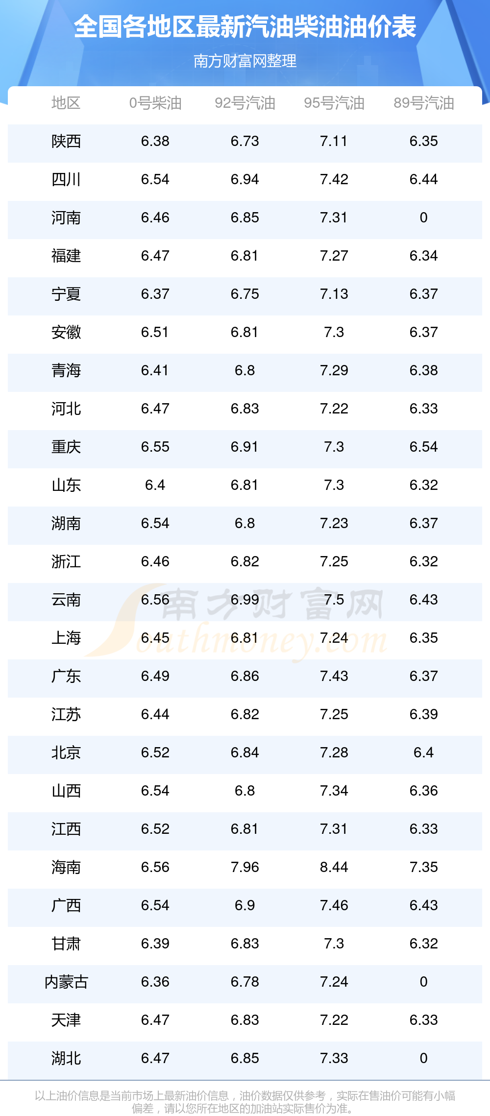 全國95號汽油最新平均價格為:7元每升,其中,最低為陜西,價格為7.11元/升,最高為海南,價格為8.44元/升。