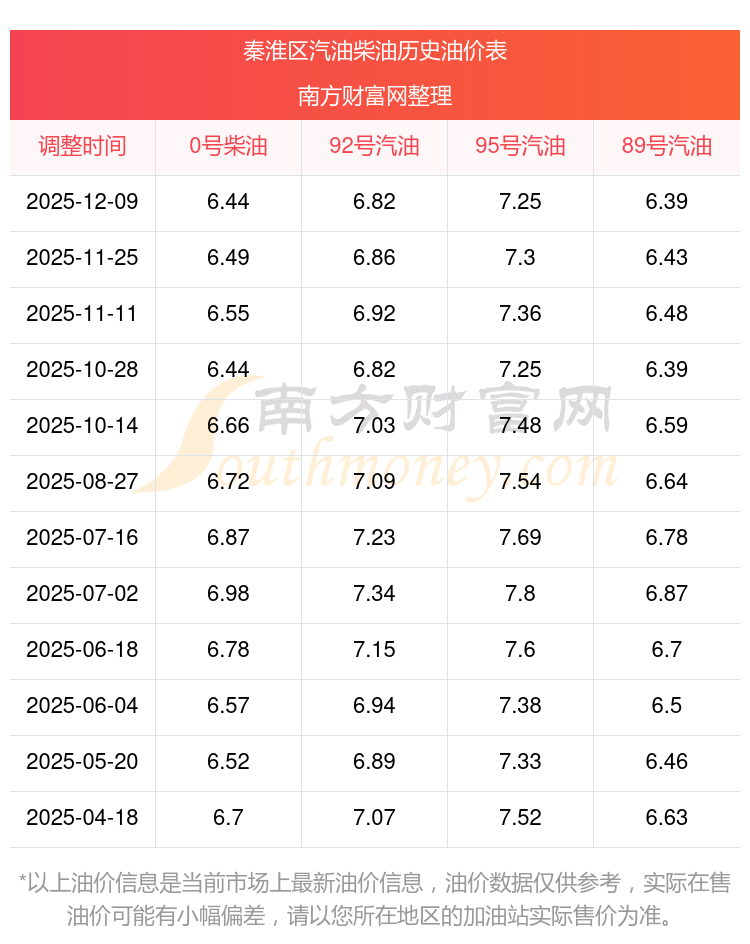 2025年秦淮區(qū)油價(jià)調(diào)整時(shí)間表