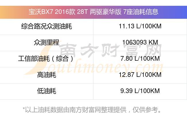 根據(jù)多位車主實測得出數(shù)據(jù),該車型低油耗為9.39L/100km,高油耗為12.87L/100km,綜合路況眾測油耗為11.13L/100km,工信部綜合油耗為7.80L/100km。