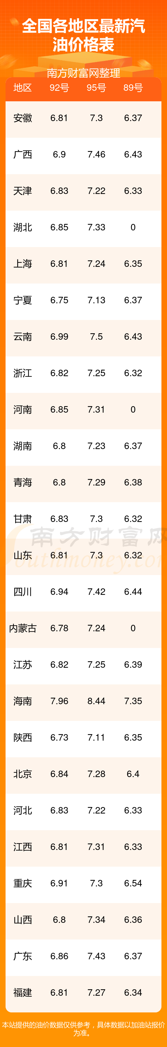 油價數據僅供參考,請以您所在地區(qū)的加油站報價為準。南方財富網發(fā)布此信息的目的在于傳播更多信息,對使用該油價信息所導致的結果概不承擔任何責任。