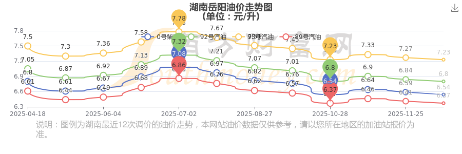 2025年湖南岳陽油價調(diào)整日歷時間表