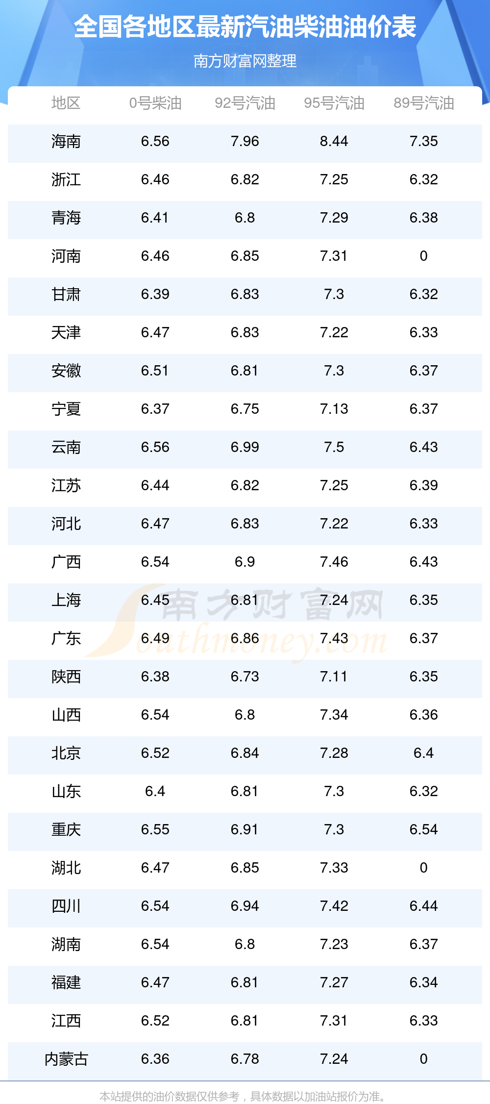 油價數(shù)據(jù)僅供參考,請以您所在地區(qū)的各加油站報價為準。