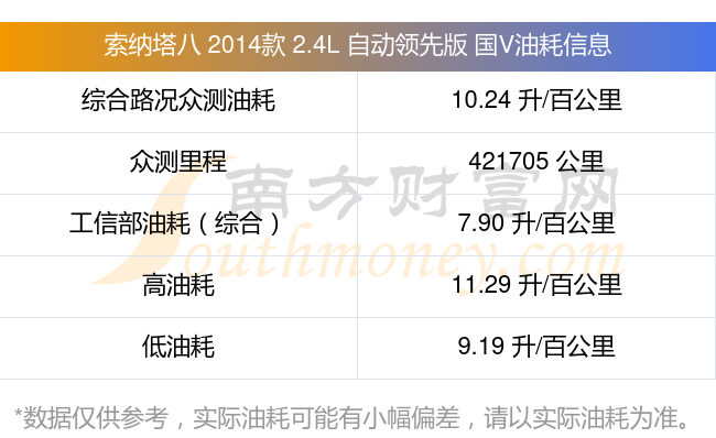 根據(jù)多位車主實(shí)測得出數(shù)據(jù),該車型低油耗為9.19升/百公里,高油耗為11.29升/百公里,綜合路況眾測油耗為10.24升/百公里,工信部綜合油耗為7.90升/百公里。