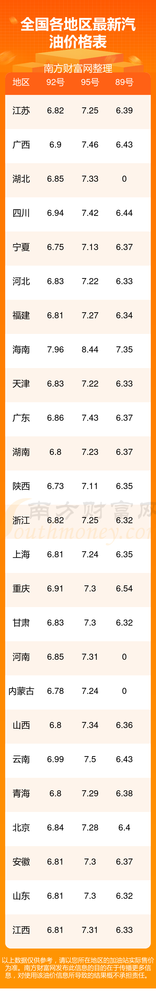 今日92號(hào)95號(hào)98號(hào)汽油價(jià)格(12月14日)