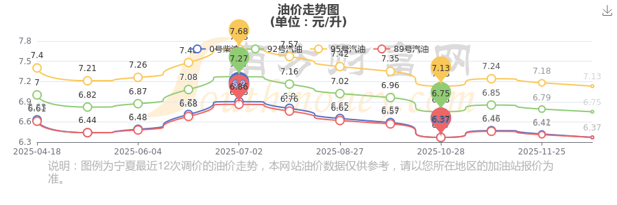寧夏石嘴山95號汽油12月14日價格查詢(12月9日油價調(diào)整后的價格):寧夏石嘴山95號汽油7.13元/升,相對上次調(diào)整時間11月25日的油價7.18元每升,減了0.05元,減0.696%。下一輪油價調(diào)整時間12月22日24時,距離現(xiàn)在還有8.15天。