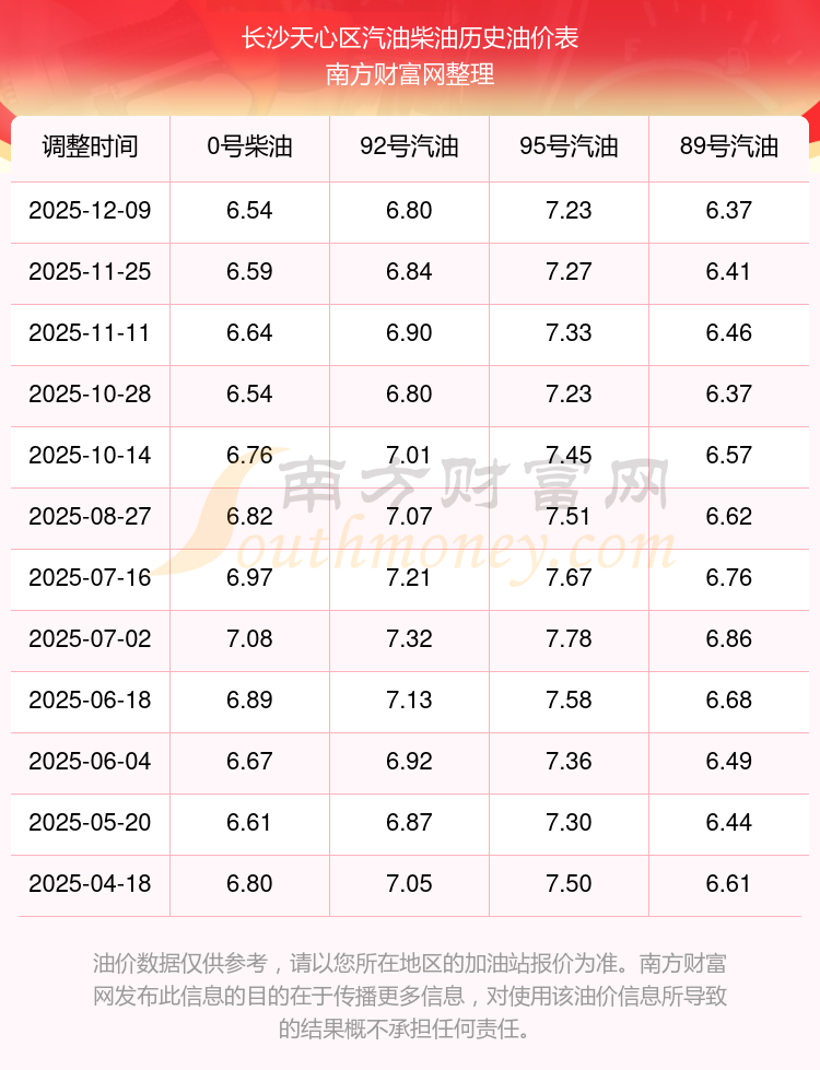 2025年長(zhǎng)沙天心區(qū)油價(jià)調(diào)整時(shí)間表
