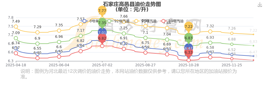 石家莊高邑縣12月14日0號(hào)柴油歷史油價(jià)調(diào)整走勢(shì)圖
