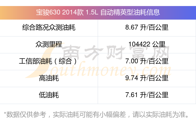 根據(jù)車主實測數(shù)據(jù),該車型低油耗為7.61升/百公里,高油耗為9.74升/百公里,綜合路況眾測油耗為8.67升/百公里,工信部綜合油耗為7.00升/百公里。