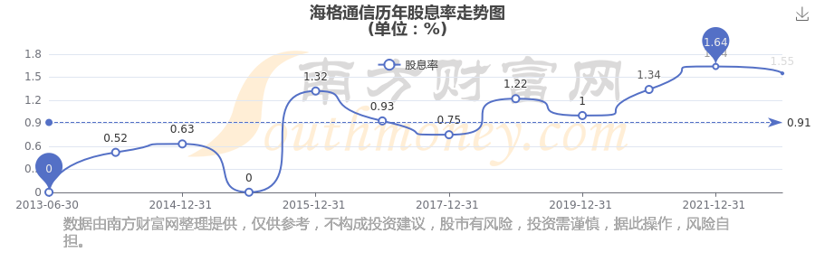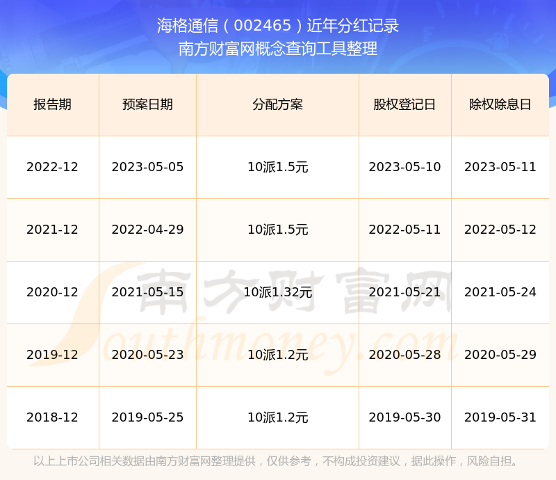 海格通信最新一次公布的分紅方案:10派1.5元。