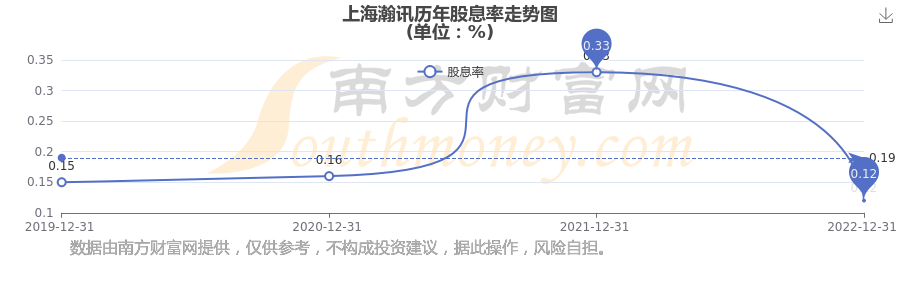 近年上海瀚訊年度股息率走勢(shì)如下圖: