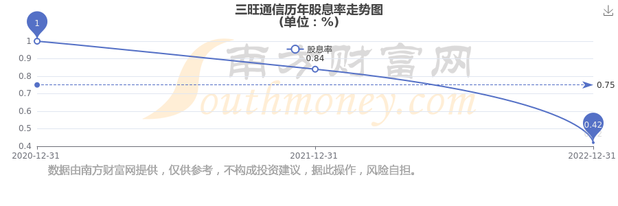 近年三旺通信年度股息率走勢(shì)如下圖: