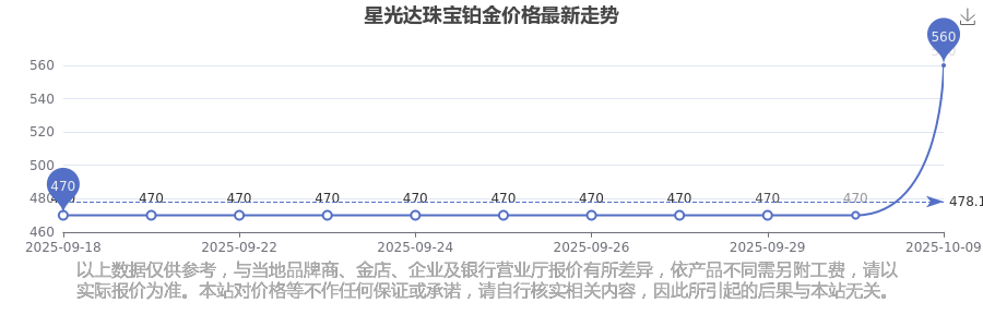 2025年10月10日星光達(dá)珠寶今日鉑金價(jià)格多少錢一克?