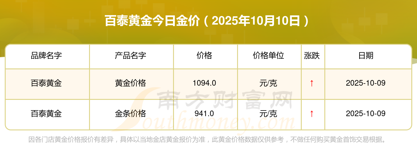 百泰黃金金價現(xiàn)在每克多少錢?今天_今日金價多少?(2025年10月10日)