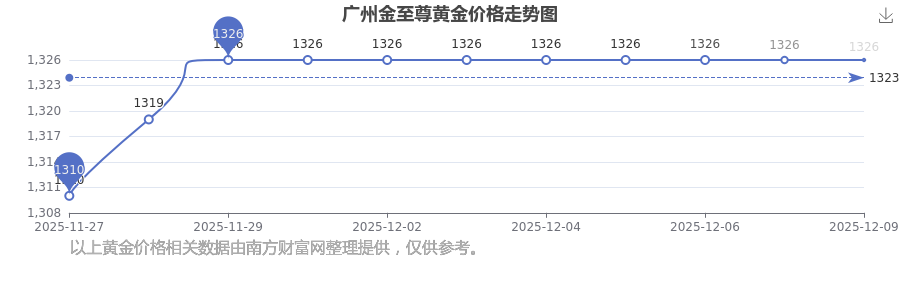 今日(2025年12月9日),1326.0元/克是廣州金至尊黃金價(jià)格的價(jià)格標(biāo)準(zhǔn)。