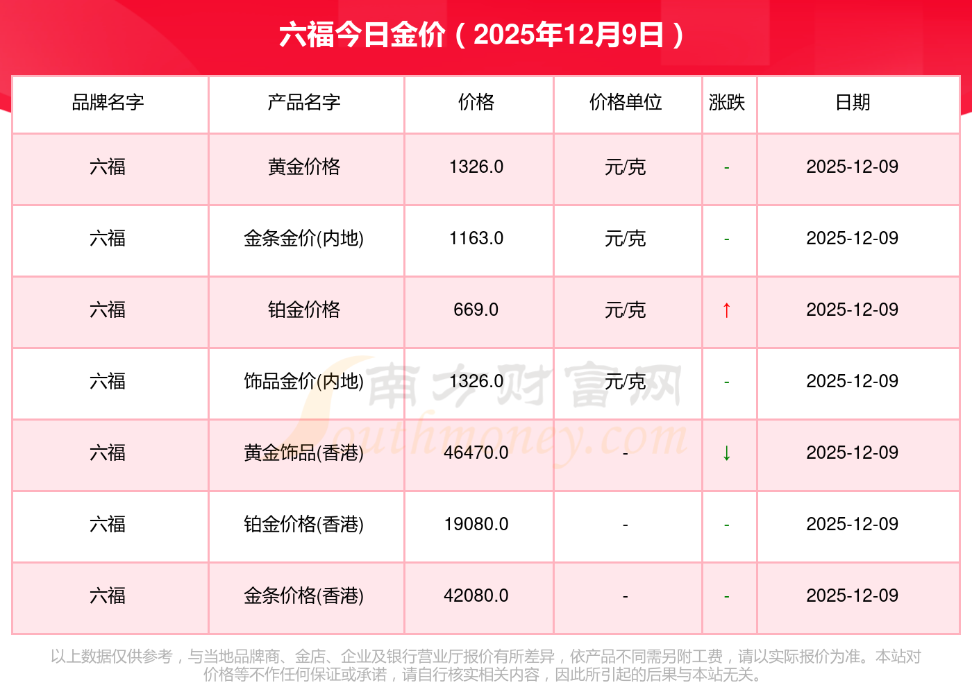 現(xiàn)在六福黃金價(jià)格是多少錢1克_2025年六福今日金價(jià)是多少錢一克,最新六福查詢,2025年12月9日六福金條金價(jià)(內(nèi)地)現(xiàn)在每克多少錢?最新六福金條金價(jià)(內(nèi)地)報(bào)價(jià)公布,一起來(lái)看看吧!