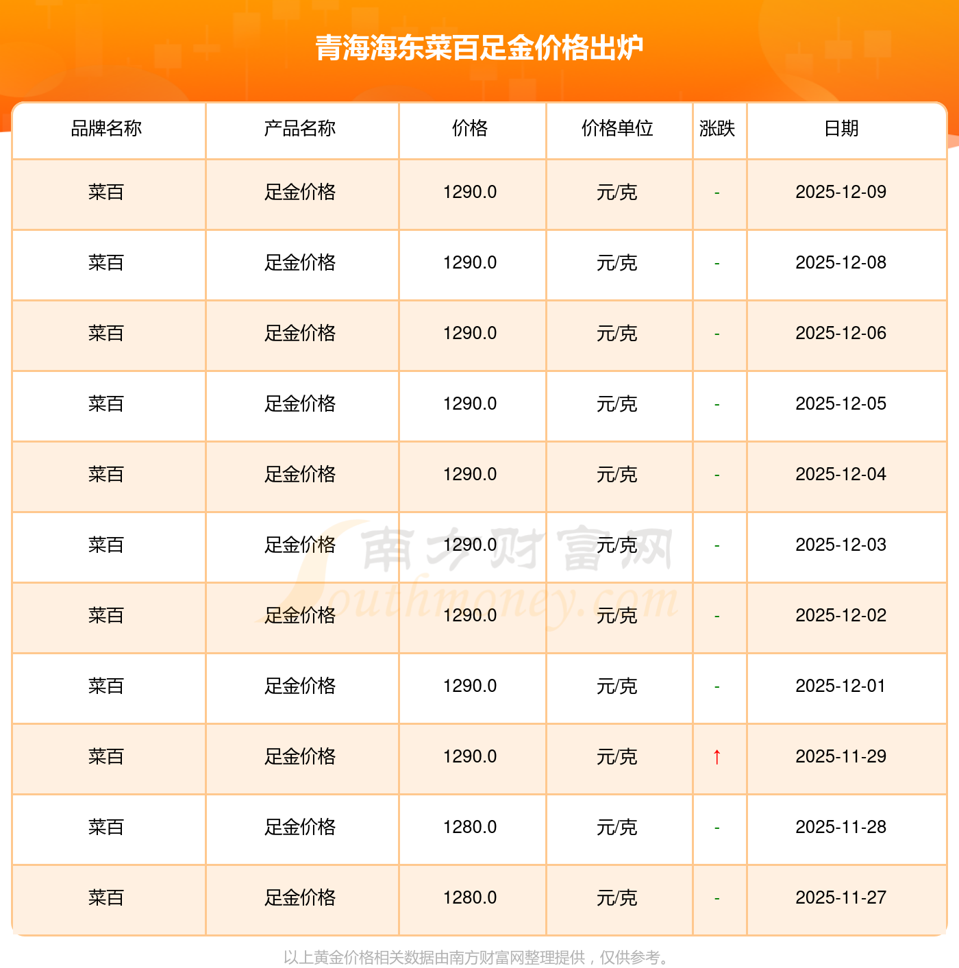2025年12月9日周大福、周大福、周大福、周大福、周大福、周大福、周大福、周六福、周六福、周六福、周六福等各大金店品牌足金價格最新價格如下:周大福黃金價格1328.0元/克,周大福鉑金價格669.0元/克,周大福飾品金價(內(nèi)地)1328.0元/克,周大福黃金飾品(香港)46520.0,周大福鉑金價格(香港)19190.0,周大福金條價格(香港)41960.0,周大福金條金價(內(nèi)地)1165.0元/克,周六福黃金價格1289.0元/克,周六福鉑金價格613.0元/克,周六福PT999鉑金價格613.0元/克,周六福金條價格1184.0元/克。
