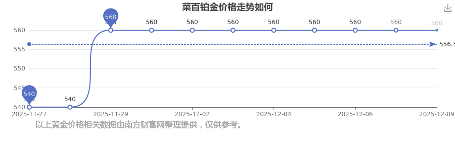 今日菜百所公布的 鉑金價格最新價格為560.0元/克。