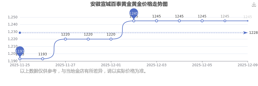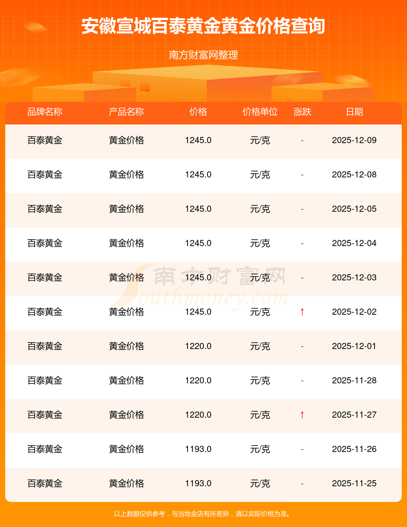 1245.0元/克,此乃安徽宣城百泰黃金于 2025年12月9日黃金價(jià)格的掛牌價(jià)格。