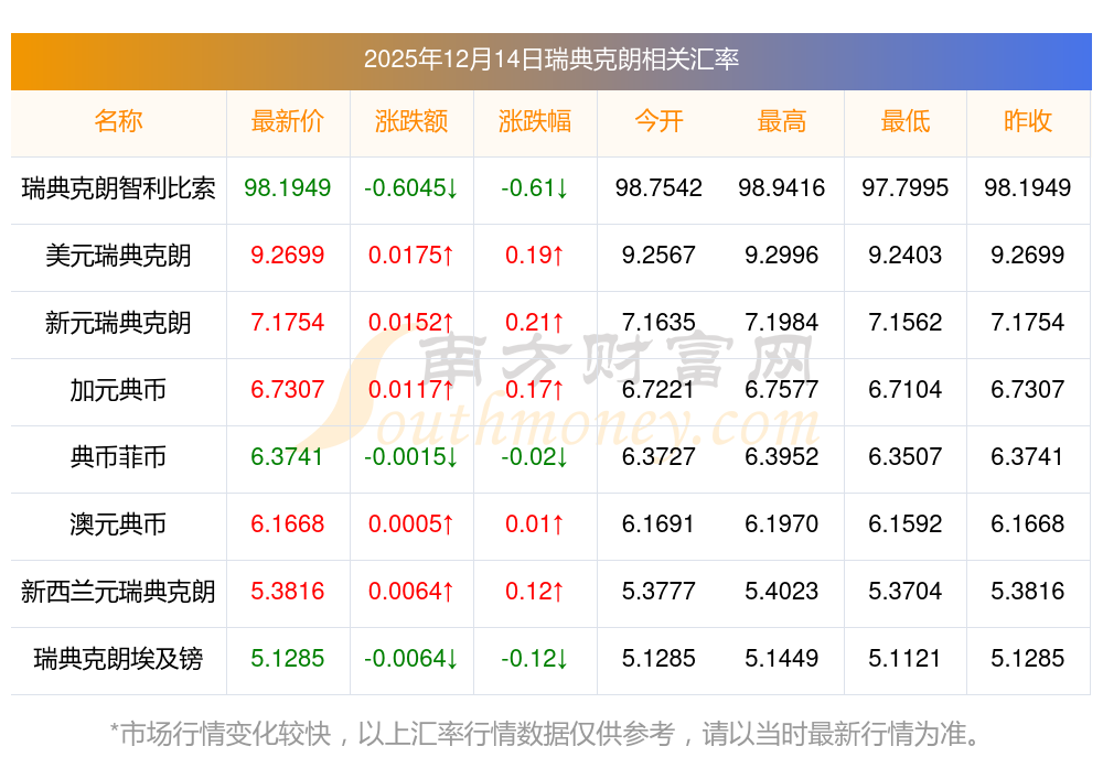 2025年12月14日瑞典克朗相關(guān)匯率查詢