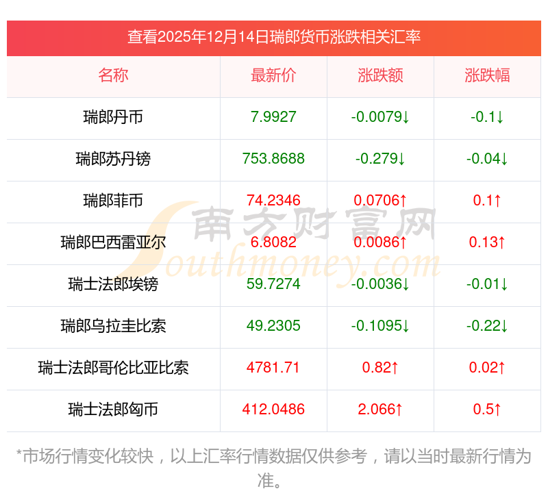 2025年12月14日瑞郎相關(guān)匯率查詢