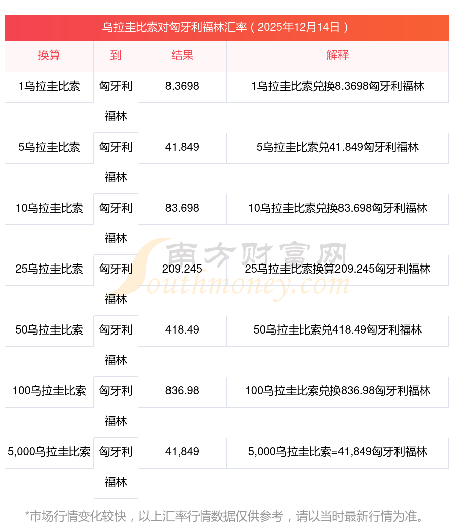 南方財(cái)富網(wǎng)為您提供烏拉圭比索對(duì)匈牙利福林匯率最新價(jià)格詳情。