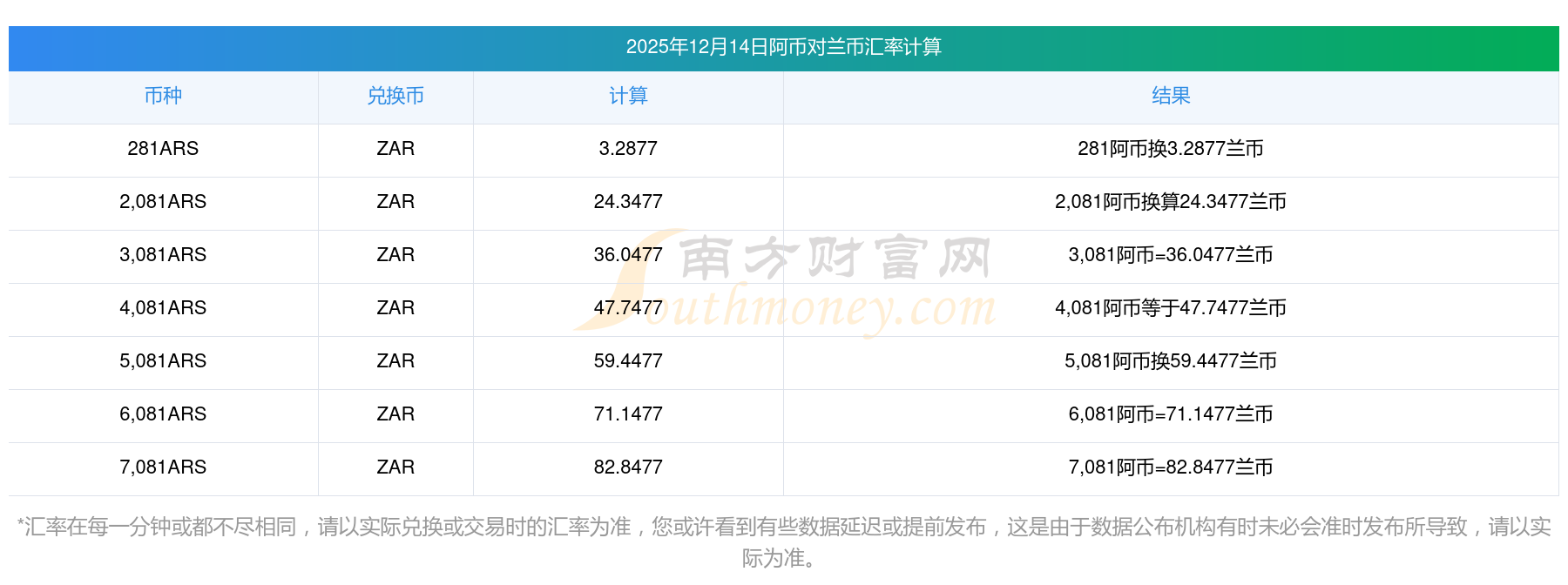 阿幣兌換蘭幣最新匯率(2025年12月14日)
