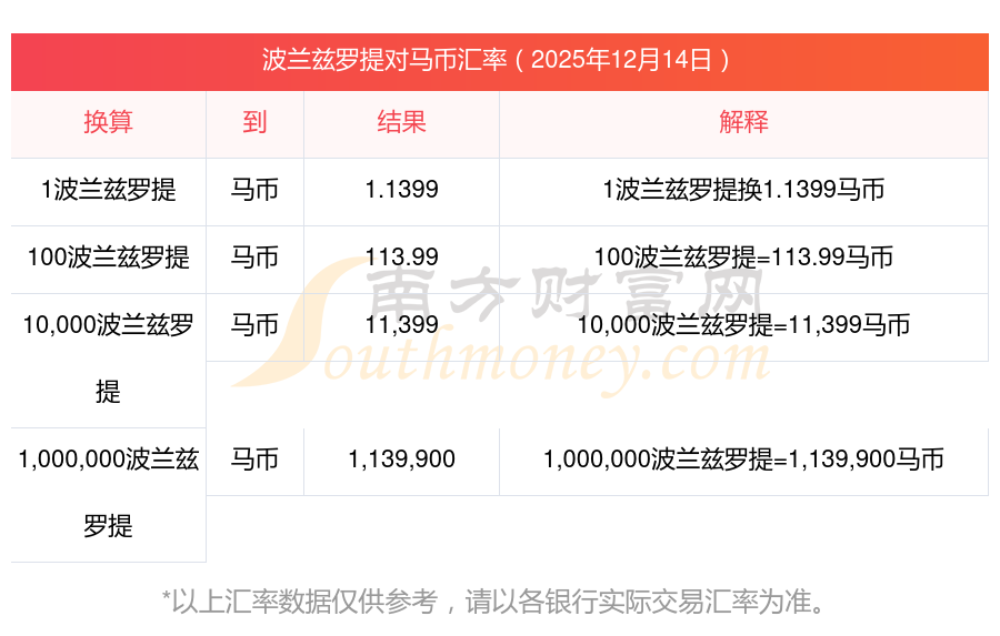 2025年12月14日匯率換算:48波蘭茲羅提對(duì)換馬幣匯率是多少?