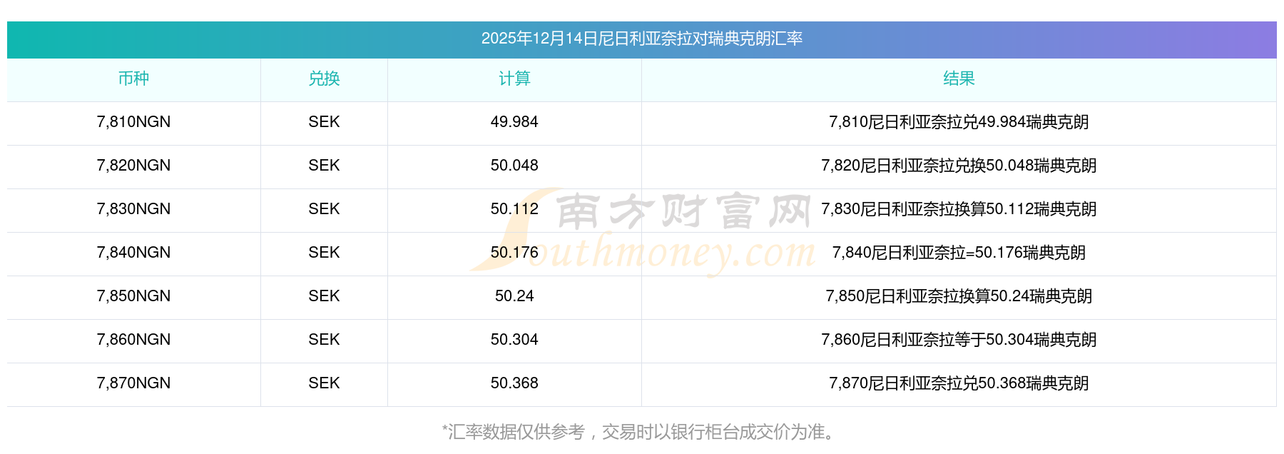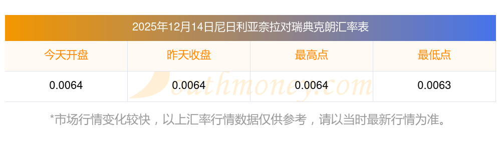 今日尼日利亞奈拉與瑞典克朗賣出價查詢(2025/12/14)