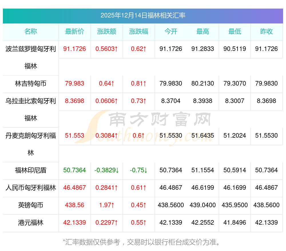 根據(jù)2025年12月14日匯率計(jì)算,福林兌換烏拉圭比索匯率最新價(jià)0.119500,今開價(jià)0.1195,昨收價(jià)0.1195,最高價(jià)0.1205,最低價(jià)0.1192。