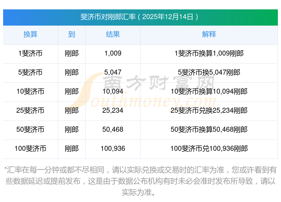 今日實(shí)時(shí)匯率 | 國(guó)外7.5萬斐濟(jì)幣換剛郎匯率多少? 2025/12/14