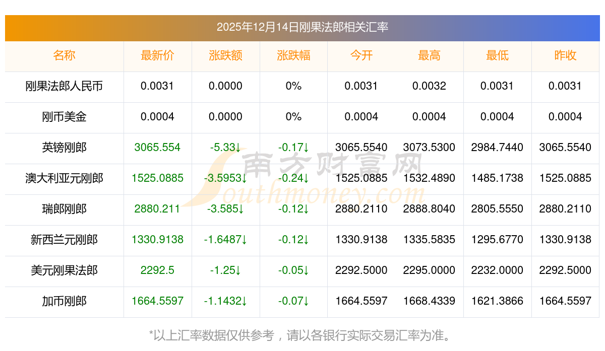 2025年12月14日剛果法郎相關(guān)匯率查詢