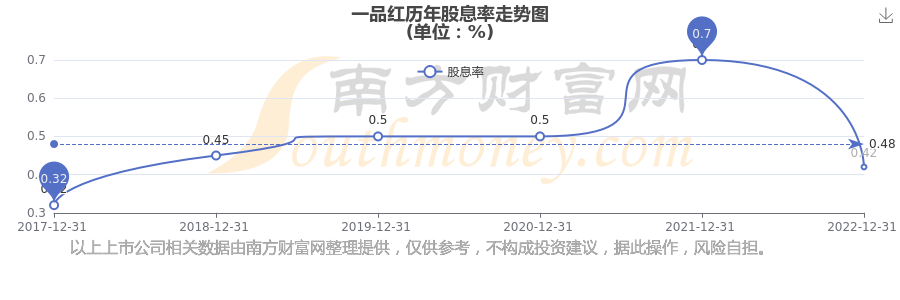 一、一品紅(300723)股票分紅記錄 一品紅最新一次公布的分紅方案:10轉(zhuǎn)5派2元。 本次權(quán)益分派股權(quán)登記日為2023年5月23日,除權(quán)除息日為2023年5月24日,派息日為2023年5月24日。 近年一品