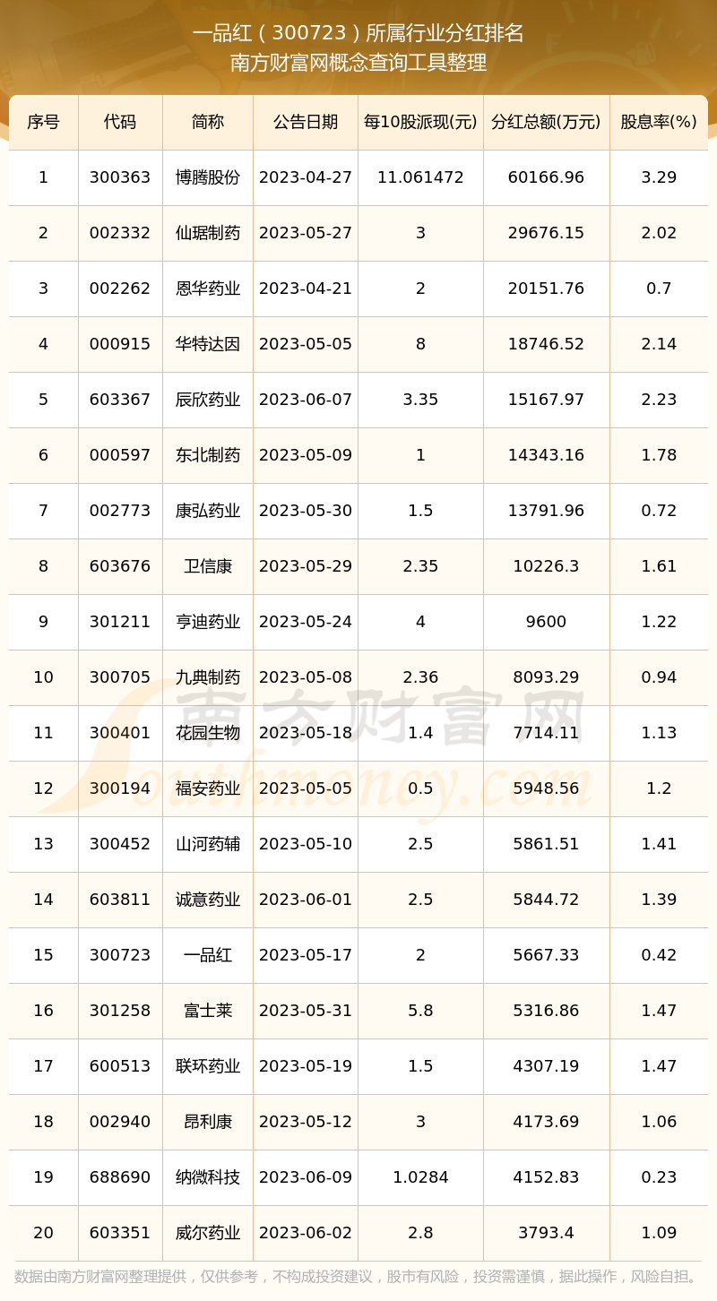 按照南方財(cái)富網(wǎng)趨勢(shì)選股系統(tǒng)統(tǒng)計(jì),一品紅所屬行業(yè)為兒童藥行業(yè),兒童藥行業(yè)分紅排名情況如下表: